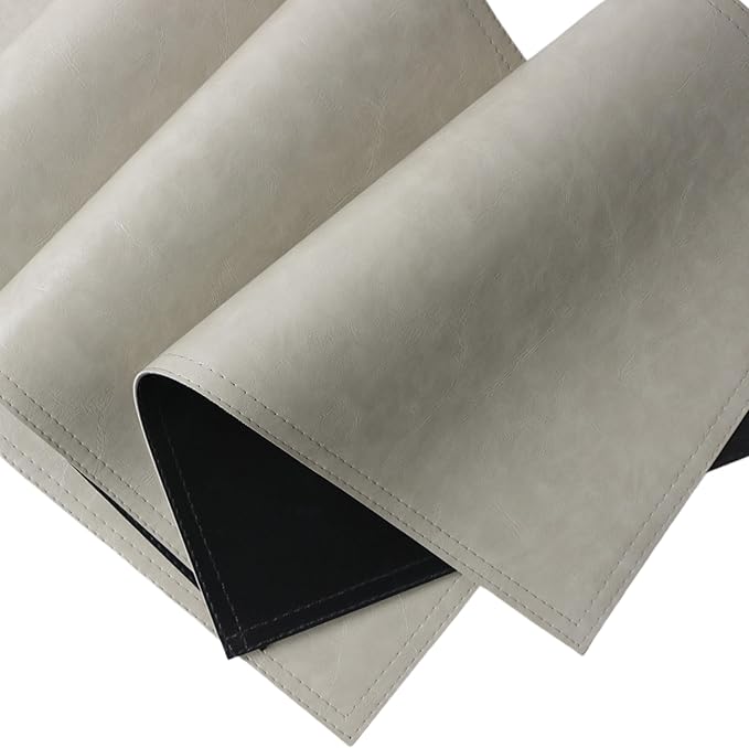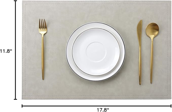 Waterproof PU Placemats, Faux Leather Dining Table Mat, Set of 4, Easy to Wipe Off Scrub Vinyl Mat, Heat & Stain Resistant for Office Conference Table, Home Decor G Parchment White