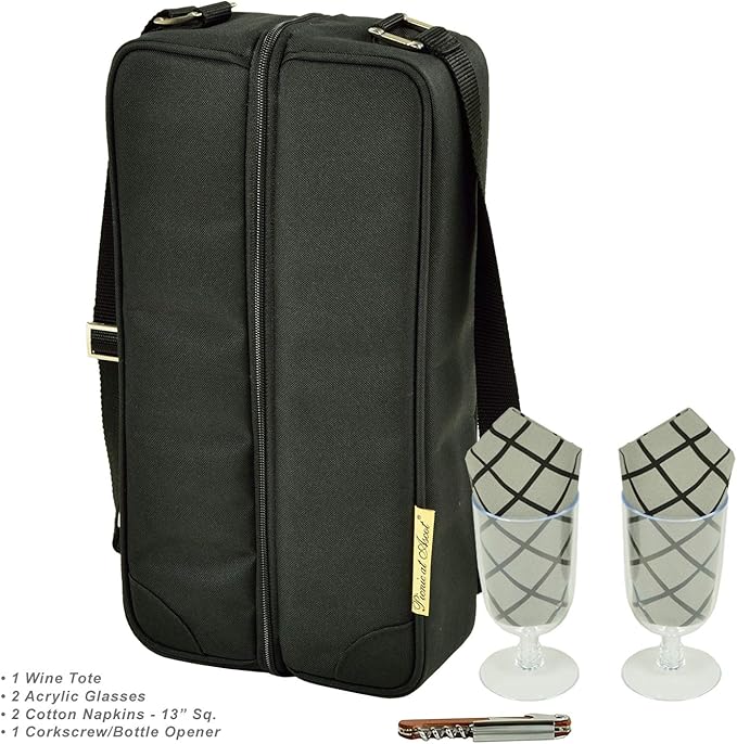 Picnic at Ascot Insulated Wine Tote with 2 Wine Glasses, Napkins and Corkscrew -Designed & Assembled in the USA