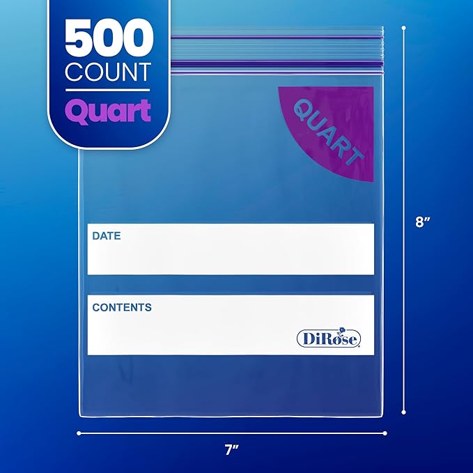 DiRose Quart Bags Pack of 500 – 1 Quart Reclosable Food Storage Bags – Practical and Durable Design – Food Safe Non-BPA Material – Easy Double Zip Closure – Ideal for Food, Snacks, Organizing