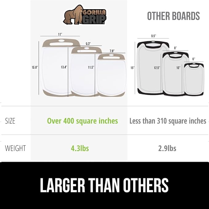 GORILLA GRIP BPA-Free Reversible Kitchen Cutting Board Set of 3, US Designed, Nonporous, Juice Grooves Catch Liquid, Slip Resistant Border, Dishwasher Safe, Durable Large Food Chopping Boards, Almond