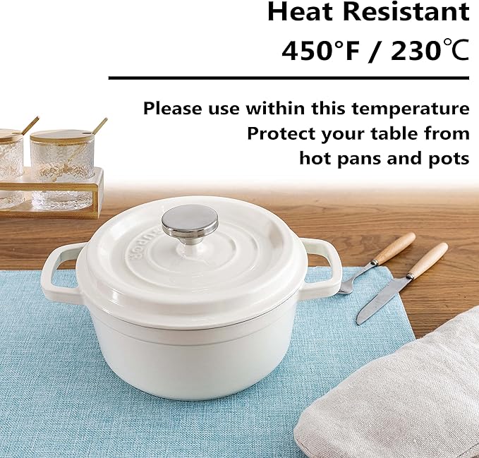- Washing Instruction: Machine washable placemats, Wash placemat separately from other articles, gentle circle in low. No bleach. Iron to get risk of the crease.