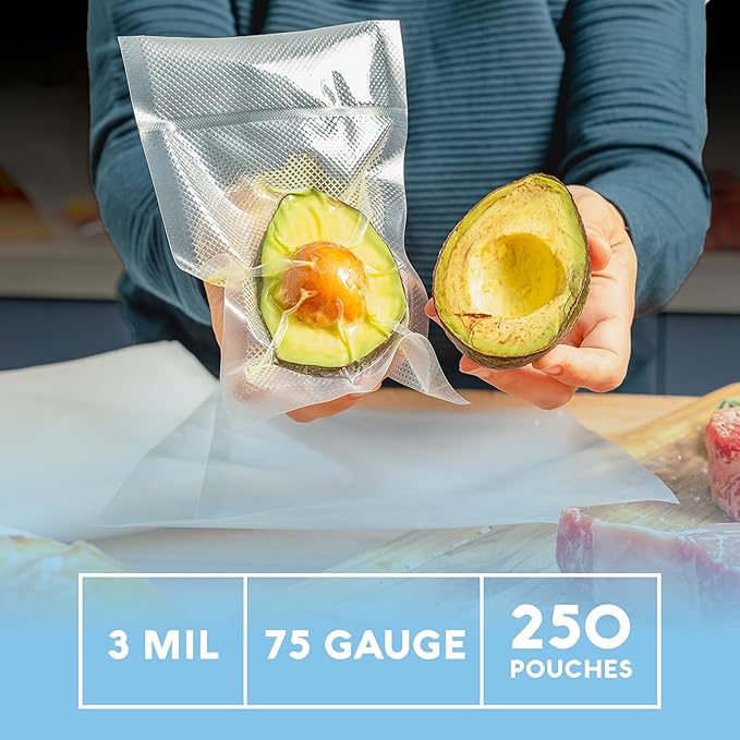 Avid Armor Chamber Vacuum Sealer Bags – Heavy Duty, BPA-Free, Pre-Cut Chamber Vacuum Bags for Food Preservation, Freezer Storage, Sous Vide and more, 250/Pack (8x10) – Multi-Use Vacuum Bags