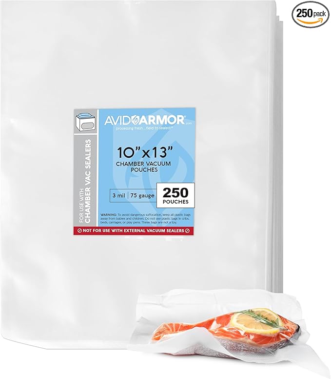 Avid Armor Chamber Vacuum Sealer Bags – Heavy Duty, BPA-Free, Pre-Cut Chamber Vacuum Bags for Food Preservation, Freezer Storage, Sous Vide and more, 250/Pack (10x13) – Multi-Use Vacuum Bags