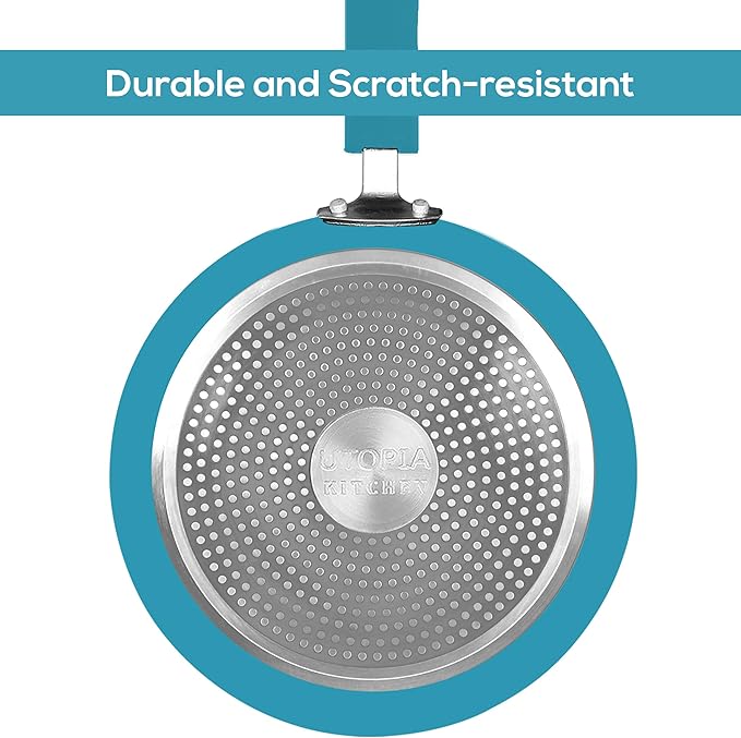 Utopia Kitchen Nonstick Cookware 3 Piece Set, Non-Stick Frying Pans with Induction Bottom, 8, 9.5 & 11 Inches Frying Pans with Bakelite Handles, PFOA Free, Turquoise & Black