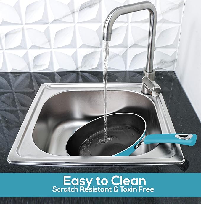 - SPICE UP YOUR COOKING AURA – The wobble-free bakelite handles are artistically designed and firmly riveted to the pans, for safety and comfort.