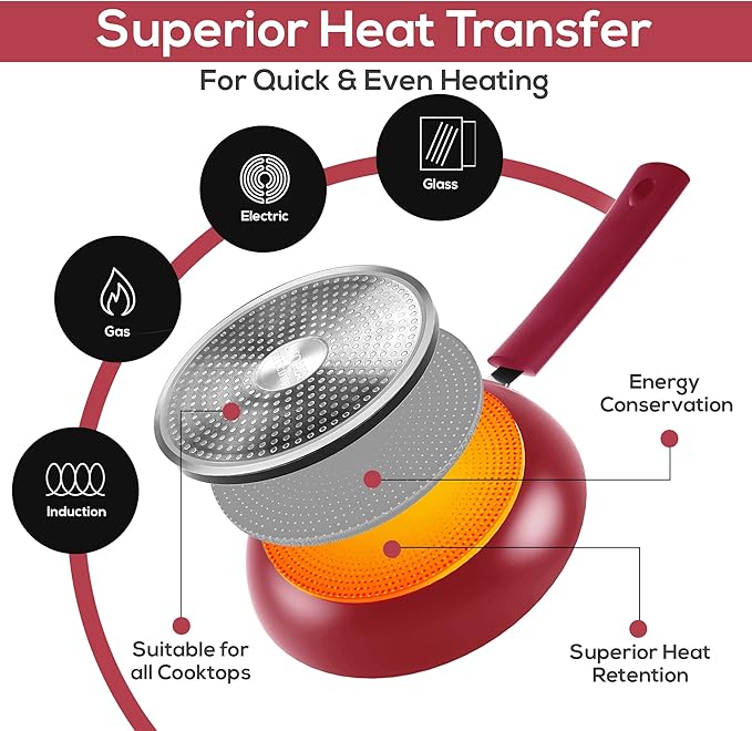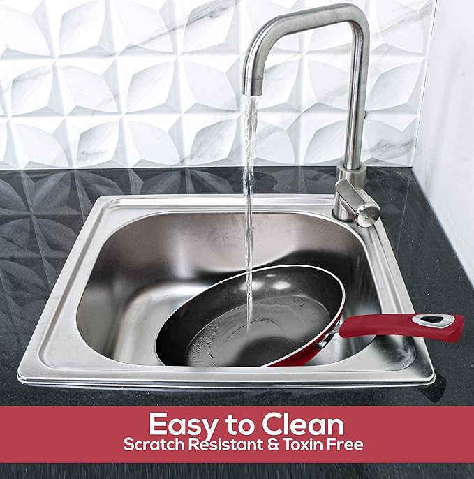 - HARBORING A CULINARY HAVEN – Explore new recipes and savor the delectable aroma, with the impeccably fabricated, nonstick even-heat distributed frying pans, ideal for all types of cook-tops, be it electric or ceramic.