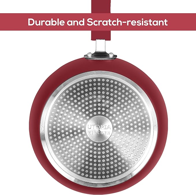Utopia Kitchen Nonstick Cookware 3 Piece Set, Non-Stick Frying Pans with Induction Bottom, 8, 9.5 & 11 Inches Frying Pans with Bakelite Handles, PFOA Free, Red & Black
