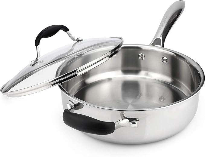 AVACRAFT 18/10 Tri-Ply Stainless Steel Saute Pan with Lid, Helper Handle, Induction & Stovetop, Versatile Stainless Steel Skillet, Cookware (3.5 Quarts)