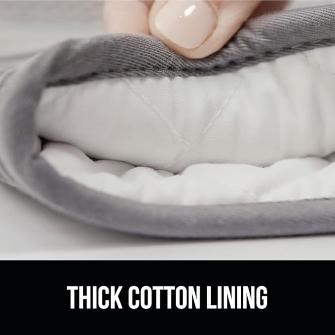 - THICK COTTON LINING THROUGHOUT: stay comfortable while you cook; soft cotton lining offers additional protection and comfort, and feel simply amazing; plus, silicone is flexible and conforms easily to your unique grip