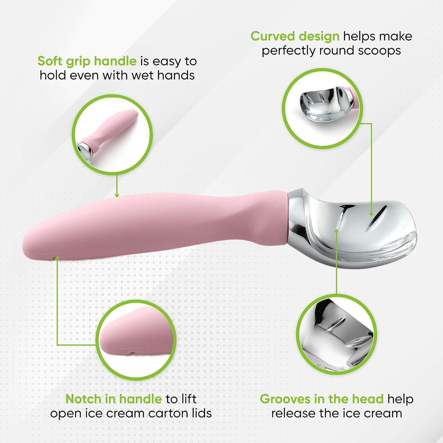 Spring Chef Ice Cream Scoop with Soft Grip Handle, Professional Heavy Duty Sturdy Scooper, Premium Kitchen Tool for Cookie Dough, Gelato, Sorbet, Pink Lemonade
