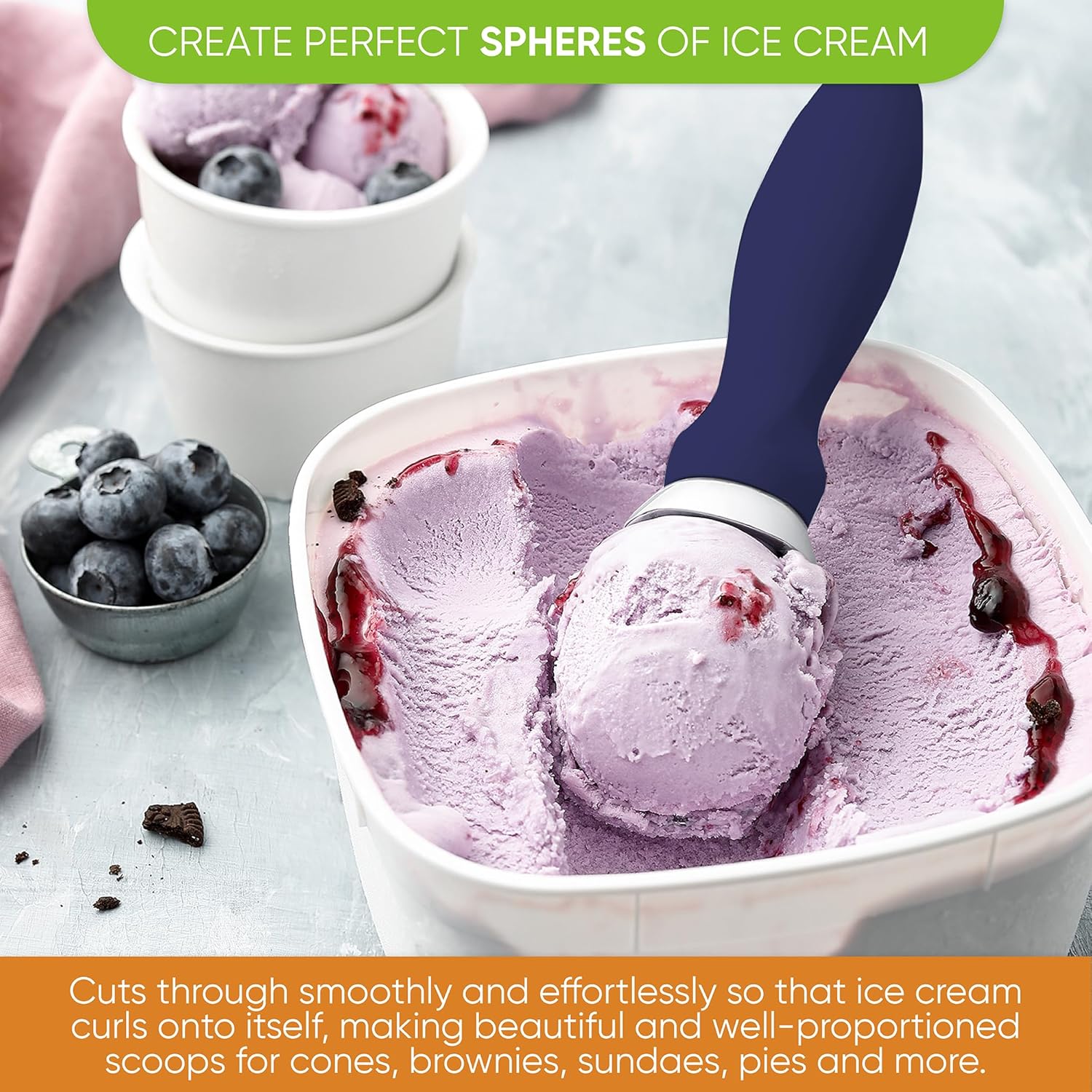 - Create Perfect Spheres Of Ice Cream - Cuts through smoothly and effortlessly so that ice cream curls onto itself, making beautiful and well-proportioned scoops for cones, brownies, sundaes, pies and more.