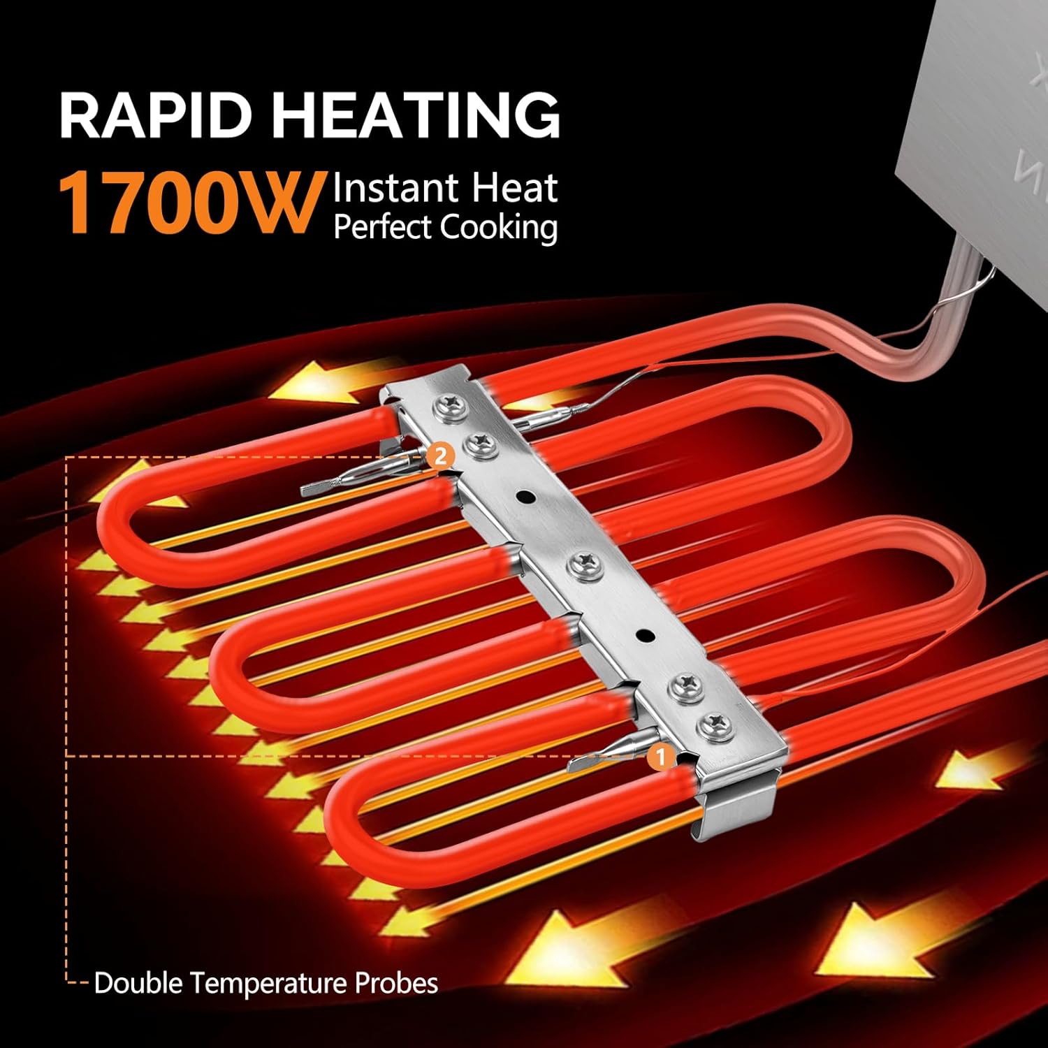 - 0-60 MINS TIMER EQUIPPED: The electric fryer is designed with timer. You can set the time from 0-60mins. And the temperature is also adjustable (60°C - 200°C (140°F - 392°F)).