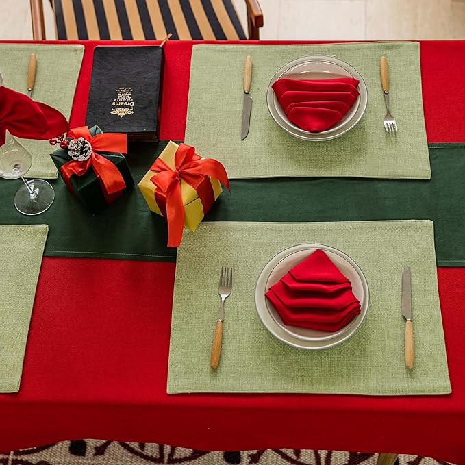 Home Brilliant Cloth Placemats Set of 6 Heat Resistant Dining Table Place Mats Kitchen Table Mats for Holiday Dinner Decor, Grass Green