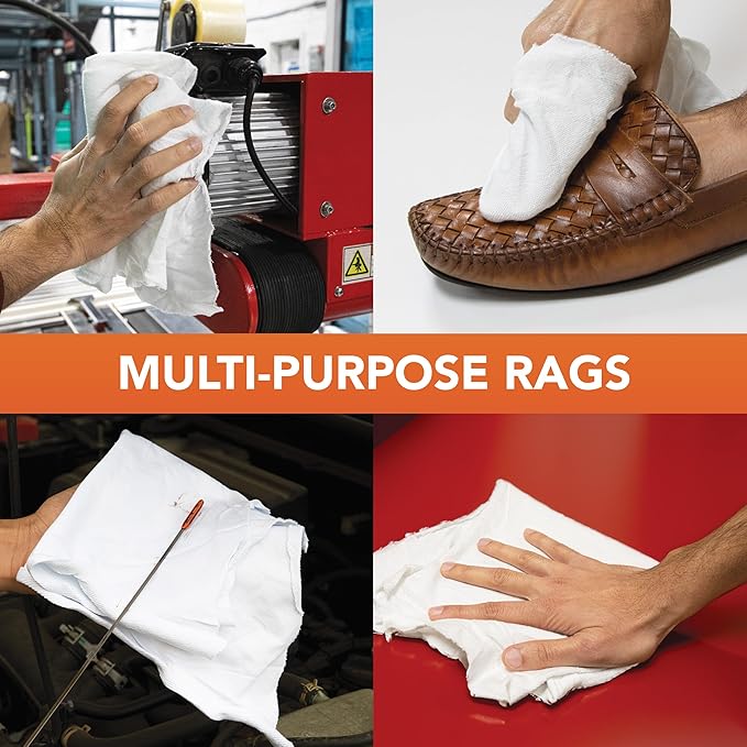 - VERSATILITY: Whether you need to clean your home, keep our rags in your shop, garage, garden shed, and toolbox, the cleaning solutions terry towels are the way to go. These cleaning t-shirt rags can be used as general cleaning, paint spills and cleanup, staining and varnishing, polishing and dusting, these absorbent towels are ideal for every purpose.