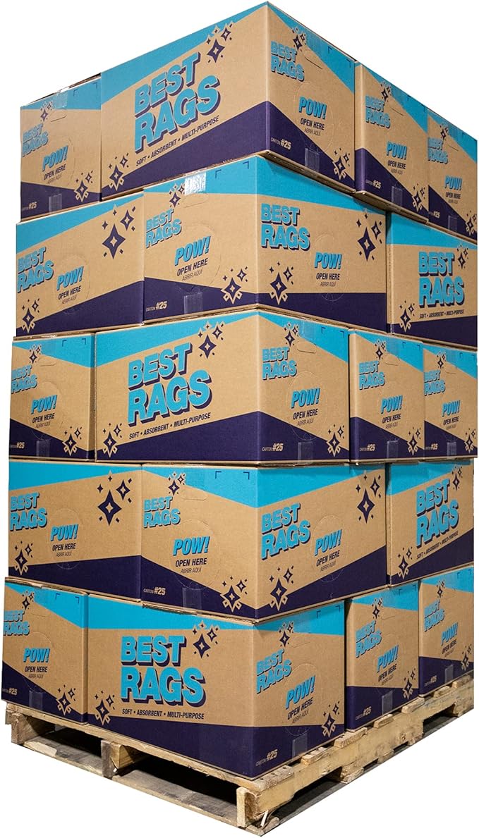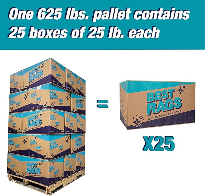 Arkwright Tshirt Box of Rags - 625 lb Pallet - Low Lint, Streak-Free Multipurpose Professional Cotton Cleaning Cloths for Stain, Paint, Wood, and Grease, White