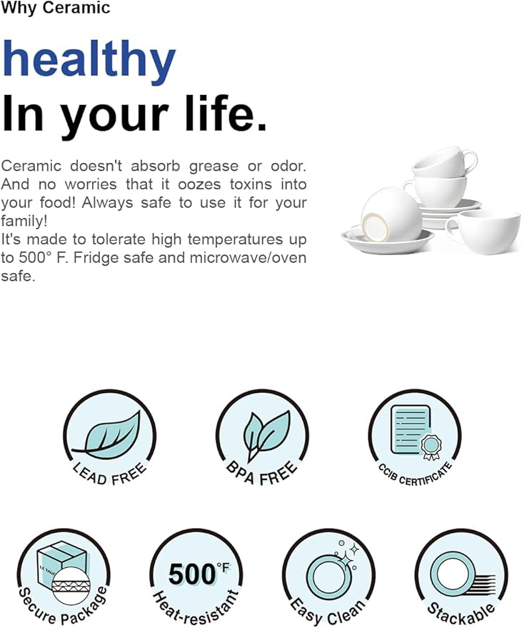 - Sleek And Easy To Clean: Use heat-safe ceramic & grade A porcelain, which is approved without lead, and Non-Toxic. The sleek ceramic glaze makes it easy to clean the cafe stains. Dishwasher safe