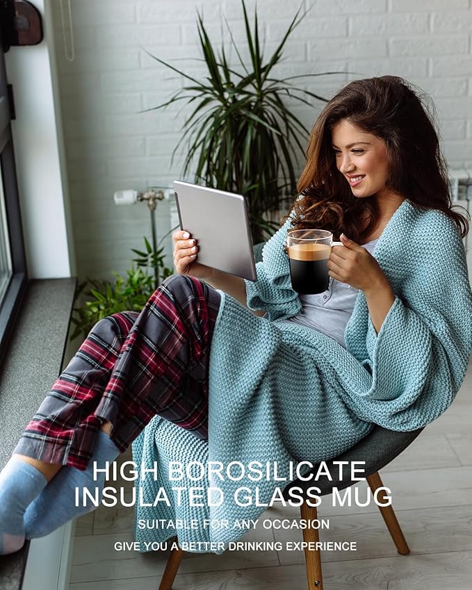 - HEALTHY AND ENVIRONMENTALLYFRIENDLY:Whether at home,laboratory or in the office,this borosilicate coffee glass has super chemical stability and strong resistance to acids, alkalis and preservatives,so you don't have to worry about harmful chemicals getting into your stomach by mistake.So,this healthy and environmentally friendly transparent coffee cup will become the first choice for coffee lovers.