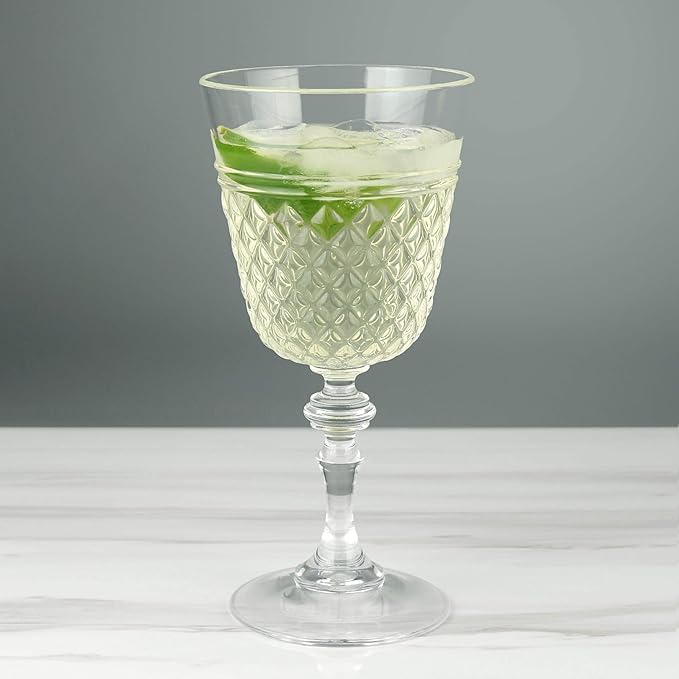 PG Plastic Wine Glasses 15oz - Set of 4 Clear Acrylic Water Glasses - Plastic Tumblers, Safe & Reusable, Drinkware for Indoor & Outdoor Glassware