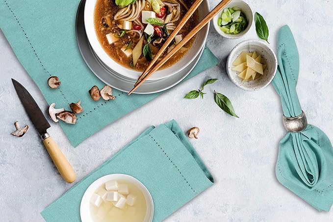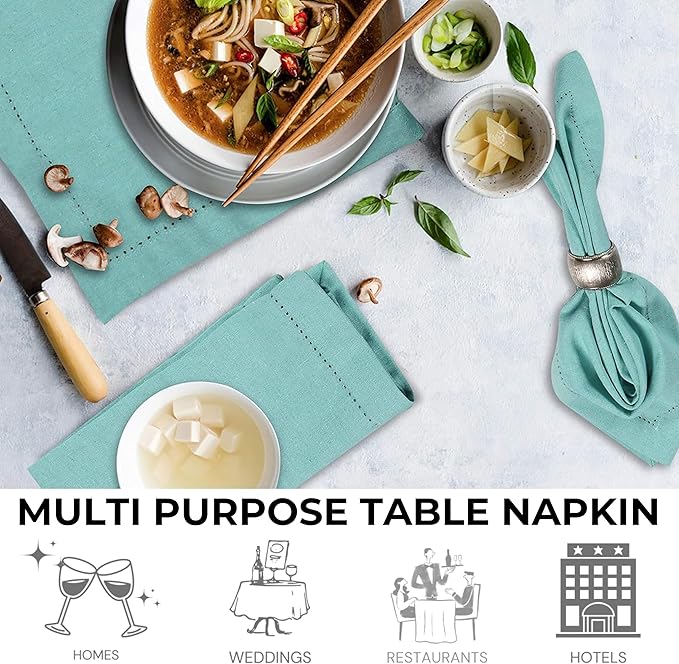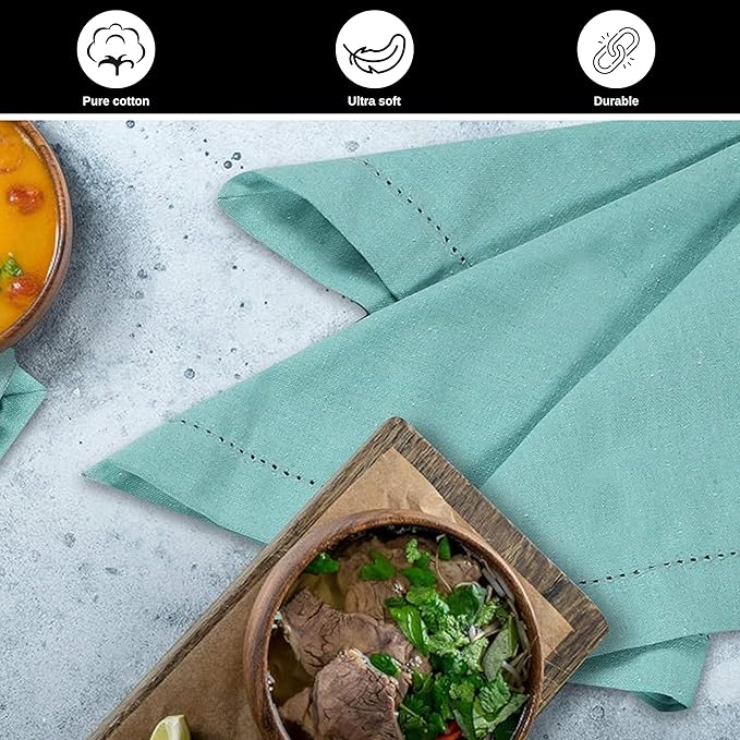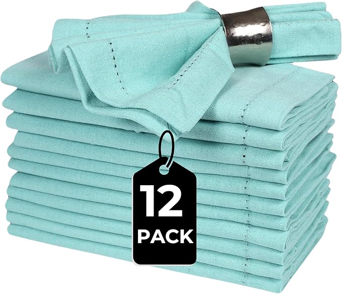 - Elegant Aqua Design: Vibrant aqua cotton napkins with hemstitched mitered corners add a refined, colorful touch to weddings, parties, and table décor.
