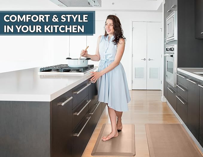 ComfiLife Anti Fatigue Floor Mat – 3/4 Inch Thick Kitchen Mats for Floor, Standing Desk Mat, Kitchen Rug – Comfort at Home, Office – Durable – Stain Resistant – Non-Slip Bottom (24" x 70", Beige)