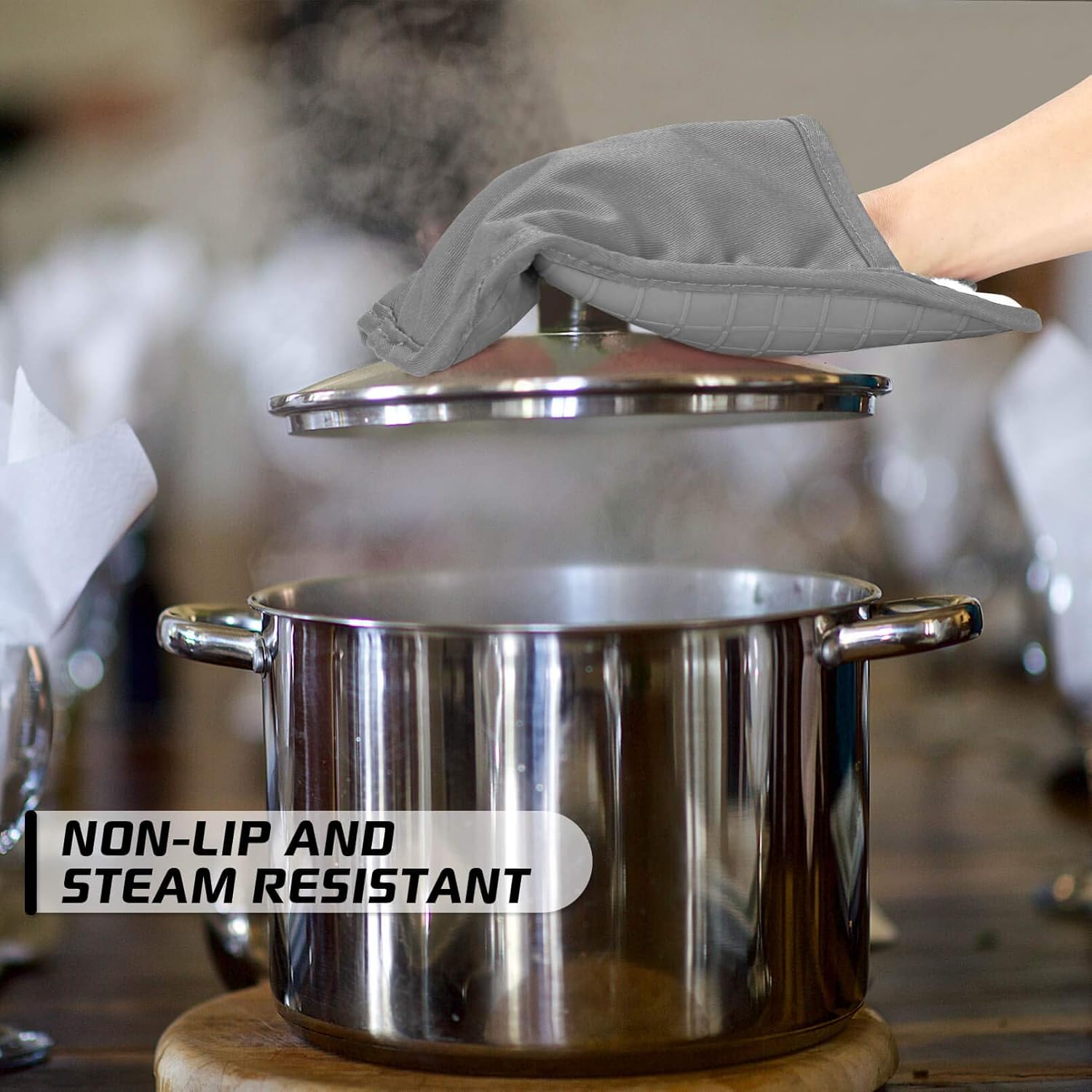 - Heat and Steam-Resistant Protection – The larger, wider design of our cooking pot holder helps better protect your fingers, hands, and wrists when stirring, mixing, reaching into ovens, or working over a hot grill.