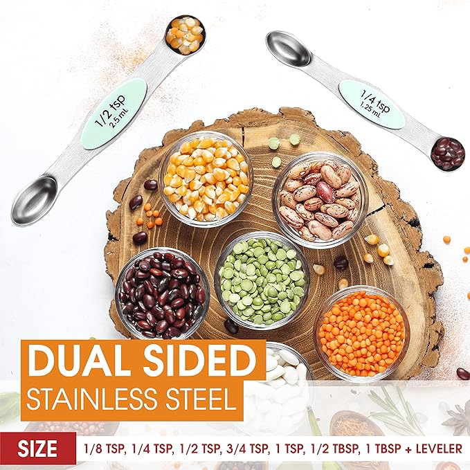 - 7 Convenient Sizes: These cute measuring spoons come in a variety of sizes, including 1/8 tsp, 1/4 tsp, 1/2 tsp, 3/4 tsp, 1 tsp, 1/2 Tbsp, and 1 Tbsp, along with a leveler.