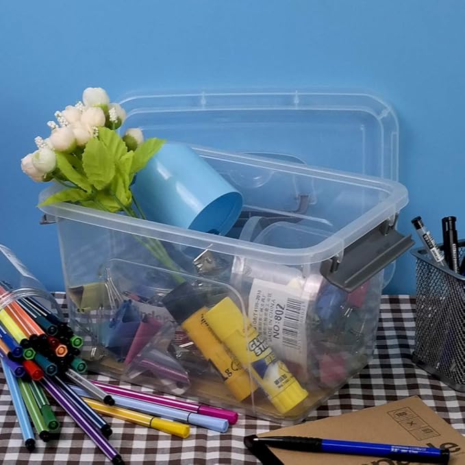 Bringer 6-Pack 5 L Clear Plastic Storage Box, Small Storage Latch Bin
