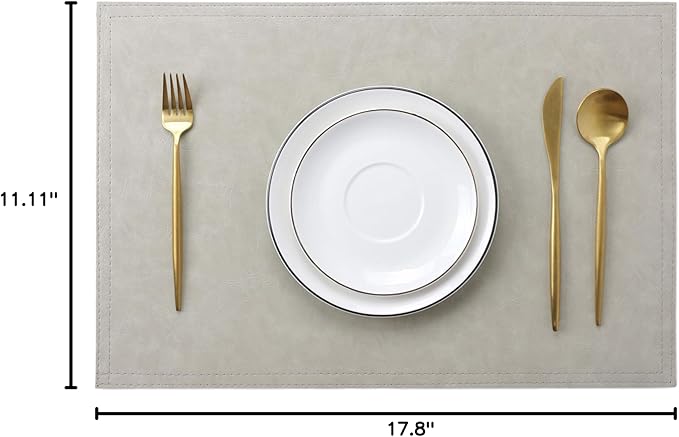 Waterproof PU Placemats,Set of 8, Faux Leather Dining Table Mat, Easy to Wipe Off Scrub Vinyl Mat, Heat & Stain Resistant for Office Conference Table, Home Decor G Parchment White