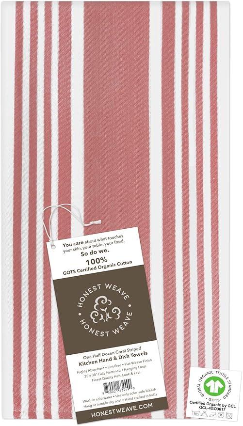 - FEEL GOOD ABOUT YOUR CHOICES! Honest Weave fine kitchen dish towels are made from 100% GOTS certified organic cotton, contain no synthetic material, and each one can help save dozens or even hundreds of trees by replacing the need for paper towels and other paper-based products. We invite you to JOIN US in our commitment to respect and preserve our environment!