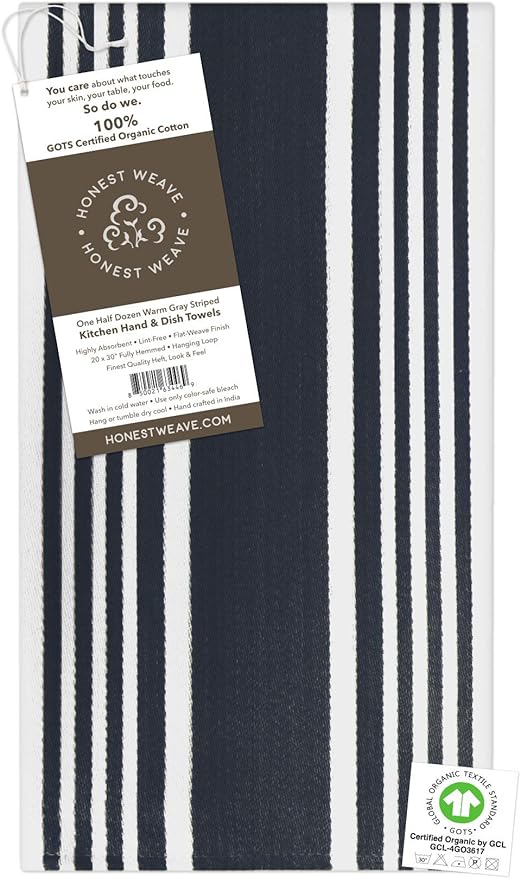 - FEEL GOOD ABOUT YOUR CHOICES! Honest Weave fine kitchen dish towels are made from 100% GOTS certified organic cotton, contain no synthetic material, and each one can help save dozens or even hundreds of trees by replacing the need for paper towels and other paper-based products. We invite you to JOIN US in our commitment to respect and preserve our environment!