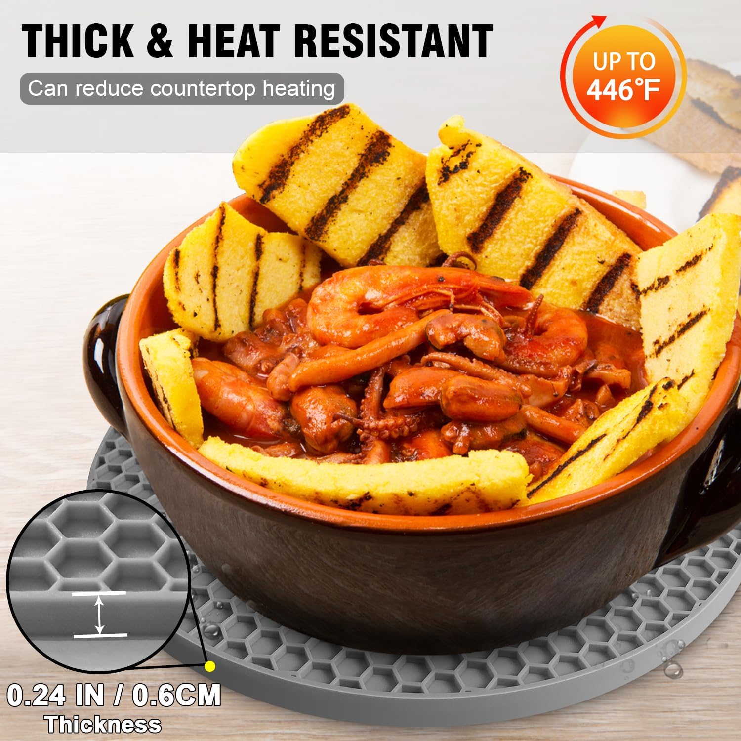- NON-SLIP AND HIGH HEAT RESISTANT: These trivets for hot dishes are heat-resistant from -104℉ to 446℉, Protect your countertop or table from hot pots, hot pans coming out from the microwave or stove. Silicone trivet is non-slip to make nothing slide off