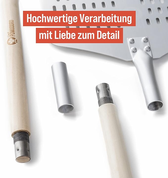 - TWO ADJUSTABLE LENGTHS: The Chef Pomodoro pizza peel handle extends from two pieces to one. So you can adjust your reach and extend up to 49” (more than 4 feet!). Or go in closer for smaller or lower temperature ovens.