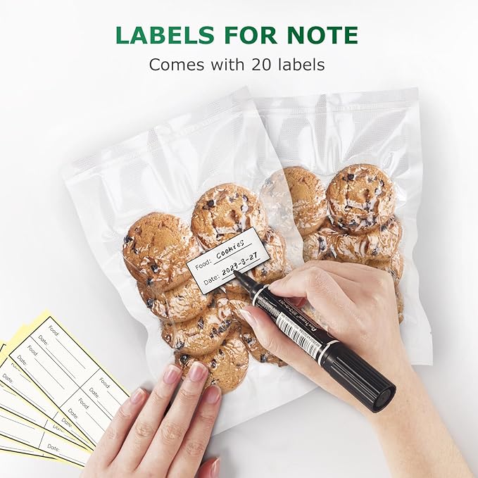 - EASY TO USE: Included labels keep track of food storage time and food category, improving efficiency and avoiding wastage. Easy-tear slit allows to tear the bag directly to take out food