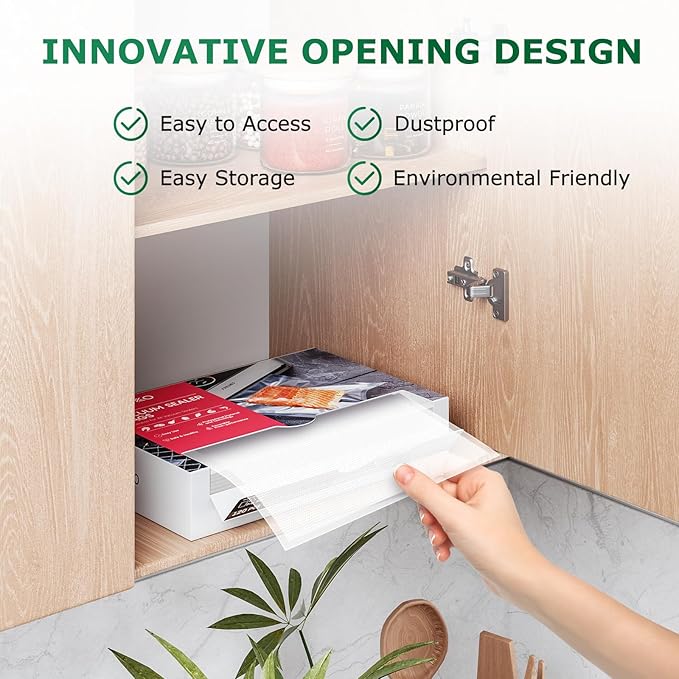 - TIDY and CONVENIENT: Innovative design of the opening structure makes access easier. Keep bags away from dust and kitchen grease to keep the inside clean