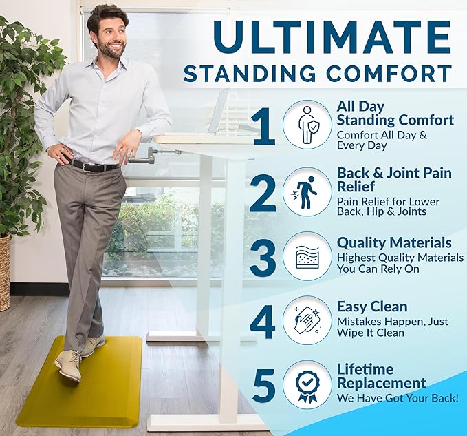 ComfiLife Anti Fatigue Floor Mat – 3/4 Inch Thick Kitchen Mats for Floor, Standing Desk Mat, Kitchen Rug – Comfort at Home, Office – Durable – Stain Resistant – Non-Slip Bottom (20" x 32", Mustard)