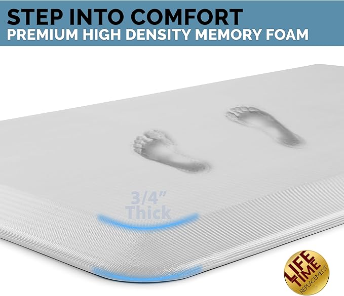 ComfiLife Anti Fatigue Floor Mat – 3/4 Inch Thick Kitchen Mats for Floor, Standing Desk Mat, Kitchen Rug – Comfort at Home, Office – Durable – Stain Resistant – Non-Slip Bottom (20" x 32", Silver)