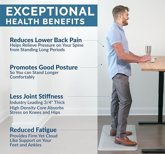 - Slip-Resistant and Stain-Resistant Surface: Stay safe and clean with our ergonomic mat that features a non-slip backing to keep it securely in place. The stain-resistant material is easy to clean and ensures your mat looks new, even with daily use.