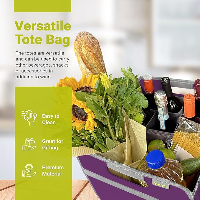- Repurpose It - These are not just bags to carry wine. meori’s folding carrier bag also doubles as a container for your grocery hauls or a storage bin for your cars. Its thoughtful design lets you bring your bottles or glasses to and from dinner parties or outings, too.