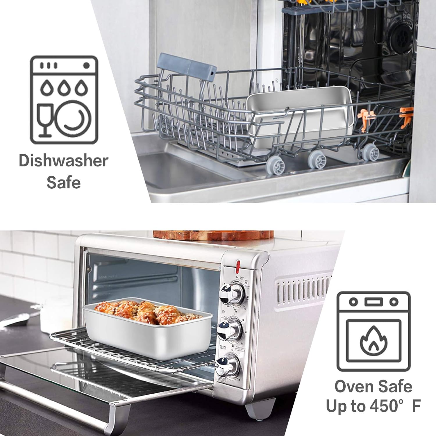 - OVEN & DISHWASHER SAFE - Meatloaf pans oven safe up to 450 β, Brushed finished baking pan easily clean up and quickly release, dishwasher safe save your time and less trouble, Recommend to use grease or parchment paper can reduce food sticking