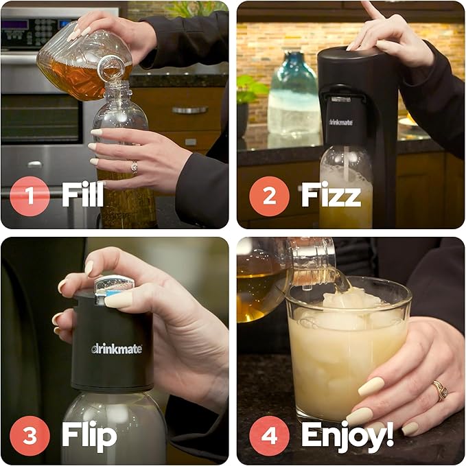 - IT'S ALL IN THE FIZZ: Unlike other soda makers and water carbonators, Drinkmate features patented Fizz Infuser technology. This unique system slowly releases pressure from the bottle, allowing you to carbonate ANY of your favorite drinks.