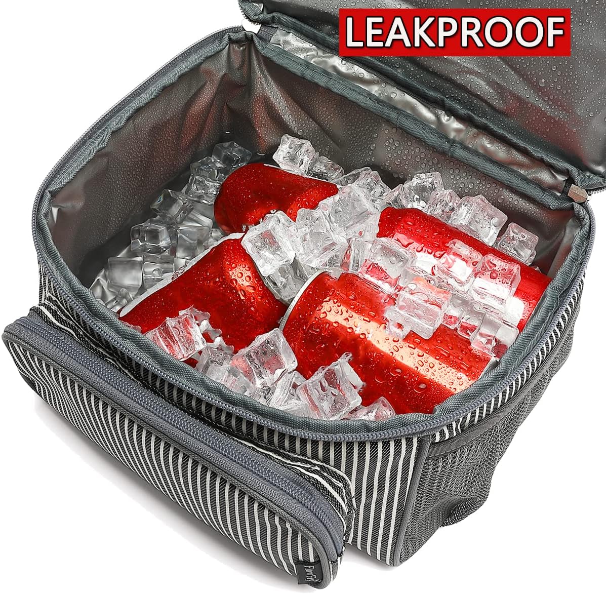 FlowFly Double Layer Cooler Insulated Lunch Bag Adult Lunch Box Large Tote Bag for Men, Women, With Adjustable Strap,Front Pocket and Dual Large Mesh Side Pockets