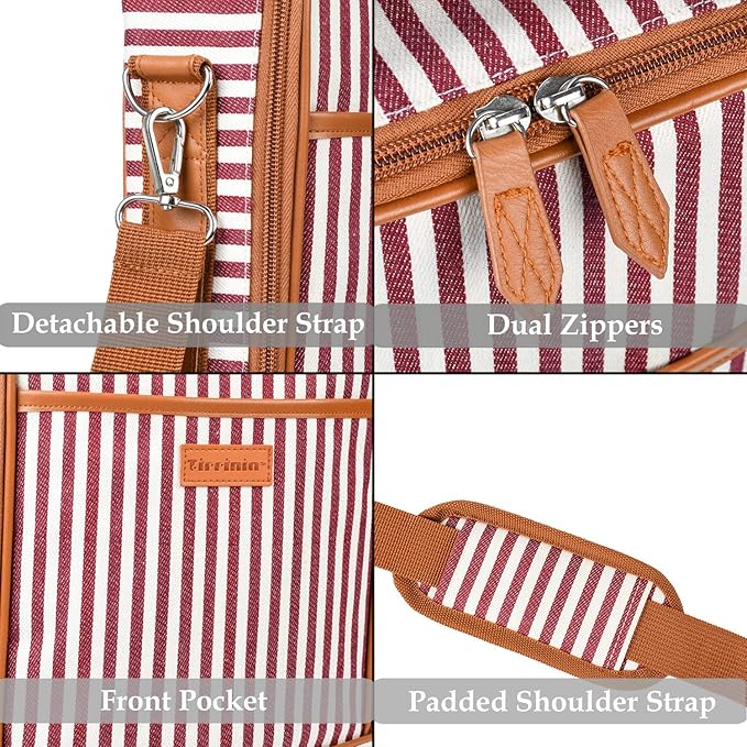 Tirrinia Insulated 2 Bottle Wine Gift Tote Bag - Wine Tumbler Glass Cooler Carrier for BYOB Restaurants, Wine Tasting, Travel, Park, Beach, Great Wine Lover Gift, Red Stripe