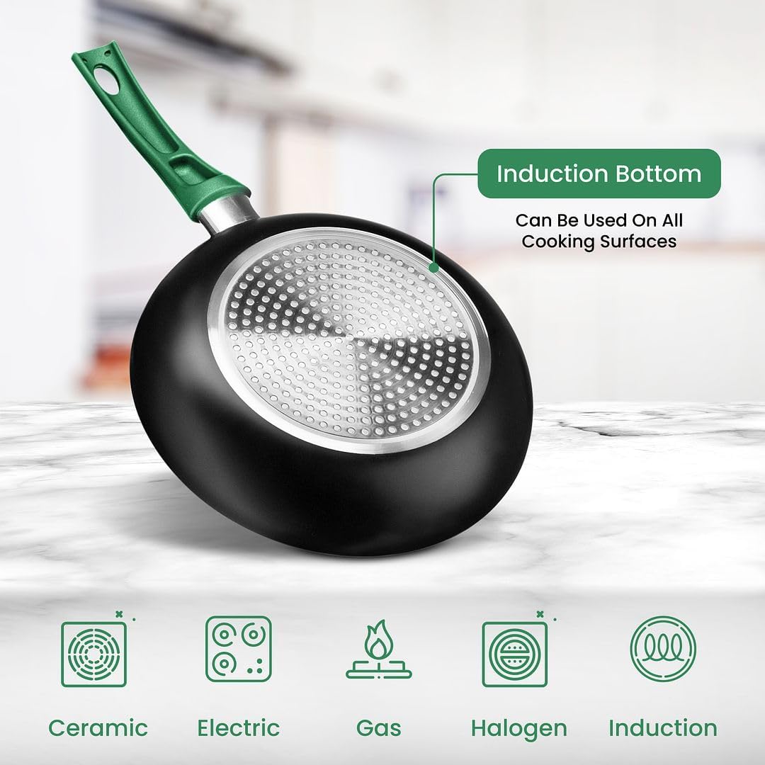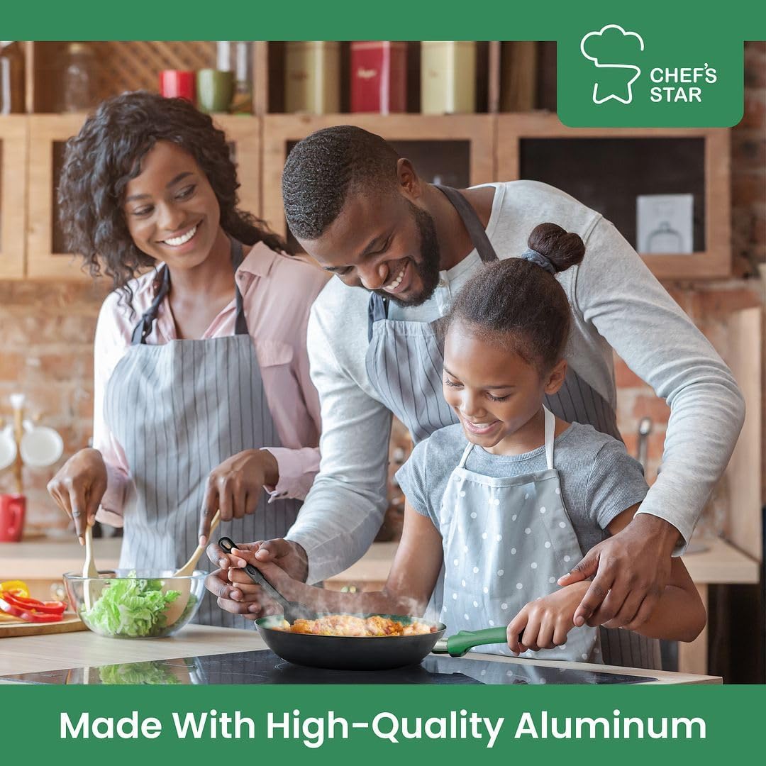 Chef's Star Pots And Pans Set Kitchen Cookware Sets Nonstick Aluminum Cooking Essentials 11 Pieces Green