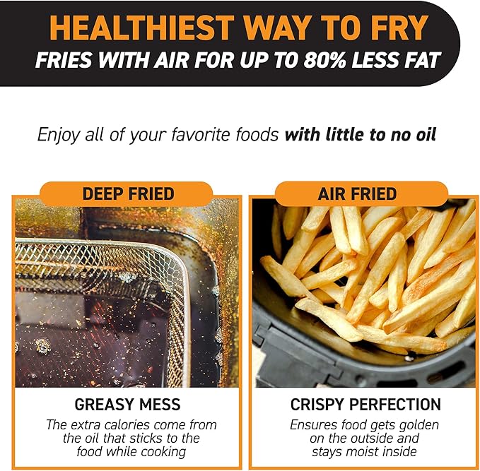 - HEALTHIEST WAY TO FRY - All of the flavor and none of the guilt! Fat removal technology in the air fryer basket removes up to 90% of fat through the cooking process , DISHWASHER SAFE: Cook Fast and Clean Fast! - Quick and easy cleanup, air fryer accessories go straight into the dish washer for cleaning bringing convenience to your kitchen must havescook modes