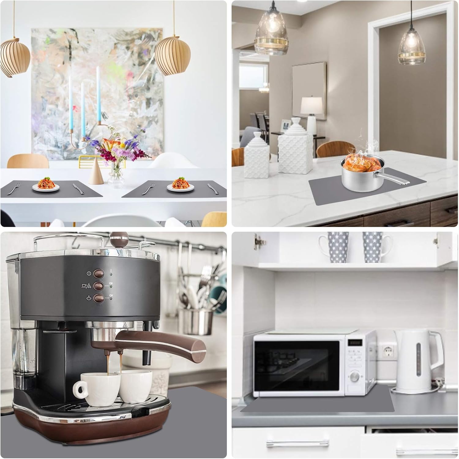 - Size :Sized at 25"x 17"x 0.03"(Length x Width x Thickness), large enough to protect your counter top, it can be placed under the microwave, air fryer, induction stove, toaster oven, coffee maker etc.