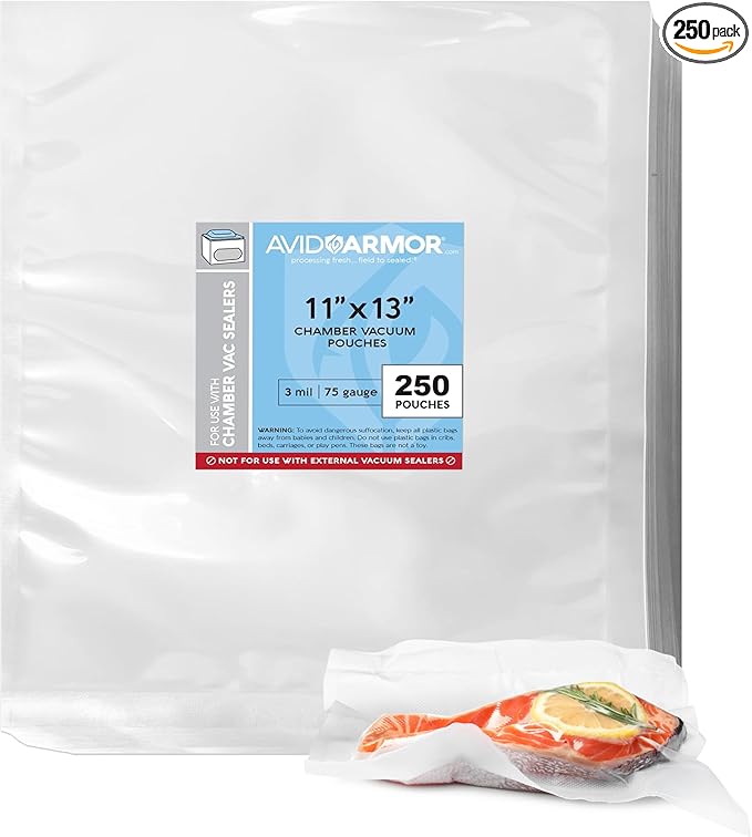 Avid Armor Chamber Vacuum Sealer Bags – Heavy Duty, BPA-Free, Pre-Cut Chamber Vacuum Bags for Food Preservation, Freezer Storage, Sous Vide and more, 250/Pack (11x13) – Multi-Use Vacuum Bags