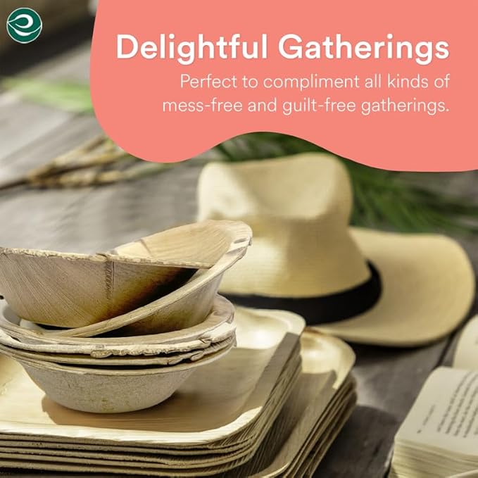 ECO SOUL Palm Leaf Bowl 200 pc, Small 5" (8 Oz) | Round Like Bamboo Bowls, Compostable, Biodegradable, Disposable Palm Leaf Bowls Eco-friendly | Sturdy, Microwave & Oven Safe
