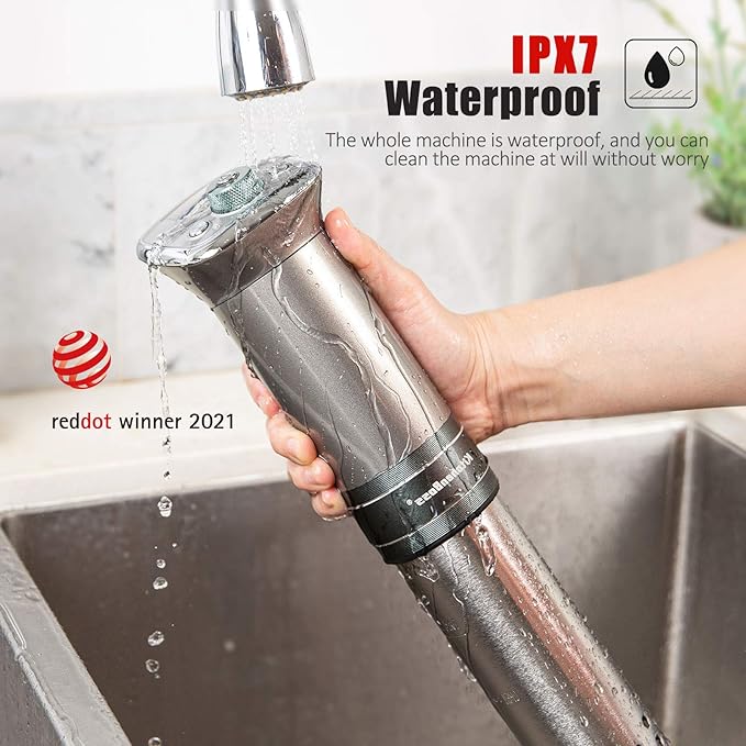 - Safe and Secure: the water inlet part is made of all stainless steel (100% food-safe SUS304) construction, and the stainless steel propeller is more secure and safe to heat than the plastic propeller, Kitchenboss focuses on making sous vide safe and secure cookware.
