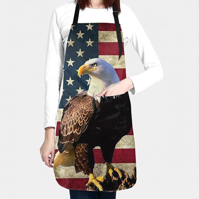 - 【Quality Material】: The bald eagle apron is made of polyester & blend fabric,no harmful chemicals, safe for your family and environment friendly.