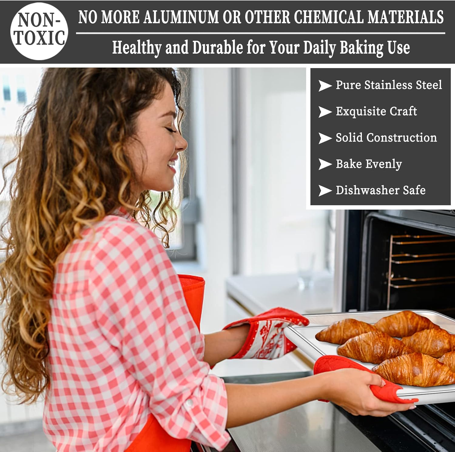- š [ENJOY HEALTHY BAKING] Deedro baking sheets and baking racks are constructed with pure stainless steel without any toxic substance or chemical coating, PTFE, PFOA, BPA and rust free. You needn't worry about coating flaking off or noxious material leaching into your food, great substitution of aluminum pan, healthy and safe for daily use.